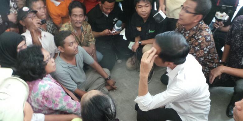Gubernur DKI Jakarta Joko Widodo berdialog dengan warga Waduk Ria Rio di Rusun Pinus Elok, Cakung, Jakarta Timur, Kamis (29/8/2013). Jokowi memberikan penjelasan soal rusun itu kepada warga. | Fabian Januarius Kuwado